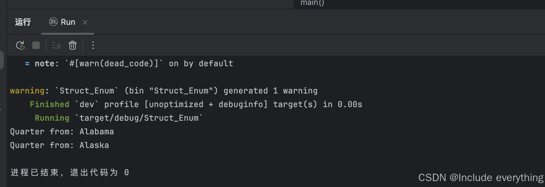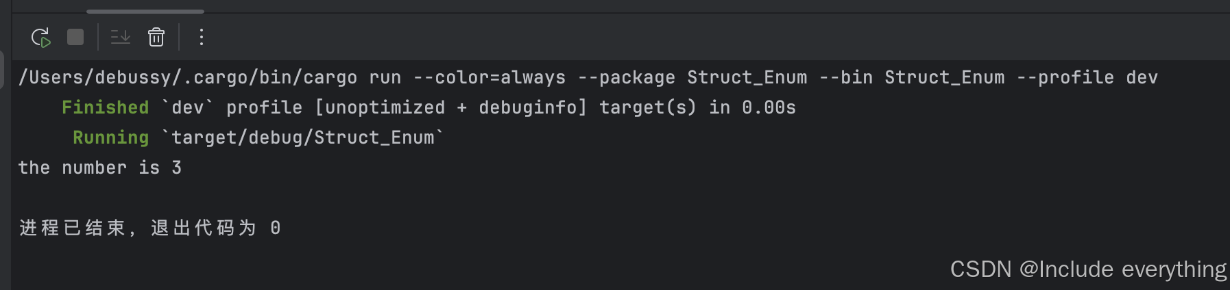 需要注意,match必须穷举所有的可能。如果没有穷举所有的可能编译器就会报错,但是有时候确实只需要处理其中一部分数据,我么需要一个default,Rust使用下划线通配符表示未提及的情况: